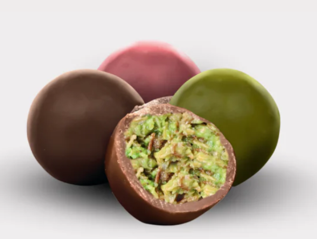 Every new batch starts with pistachio knafeh layered over each other to produce a texture you will never find anywhere else in the world. Then the chocolate is imbued with delectable fillings alongside oozing chocolate of the highest quality. These intricate chocolate balls are made for slow, refined appreciation.