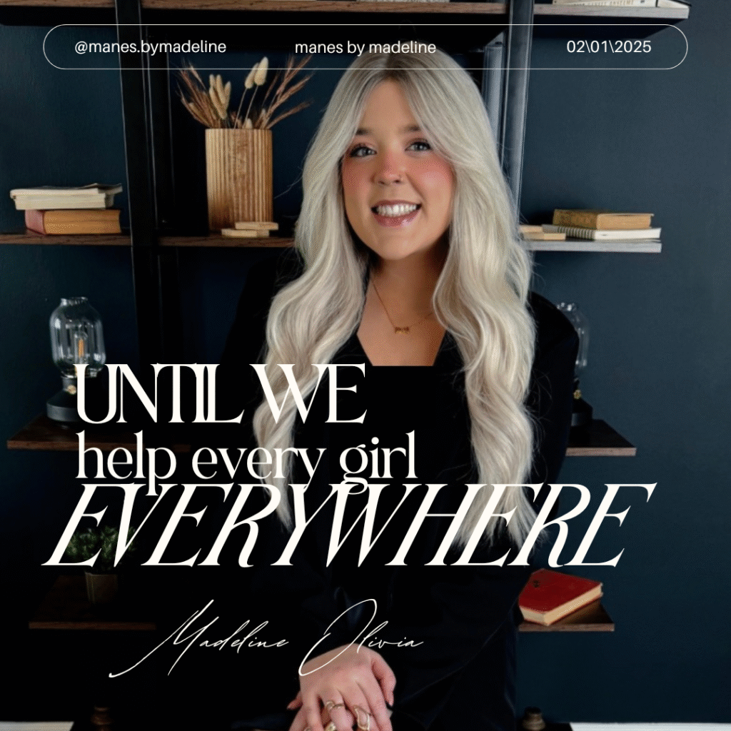 Hair loss doesn’t discriminate. Autoimmune diseases, hormonal changes, stress, chemotherapy—it can happen to anyone. But what’s truly wild is how little the beauty world has done to support those women. Manes by Madeline fills that void. Her clients range from teenagers with alopecia to mothers recovering from chemo. Some want to blend in; others want to stand out. Some are replacing something they’ve lost; others are celebrating a new version of themselves. And she gets it—she’s lived both sides, the pain and the empowerment. Every finished piece is more than a wig—it’s a moment. That quiet inhale before the tears. The “Oh my gosh, I look like me again.” That’s what her work is built on: not hair, but healing.